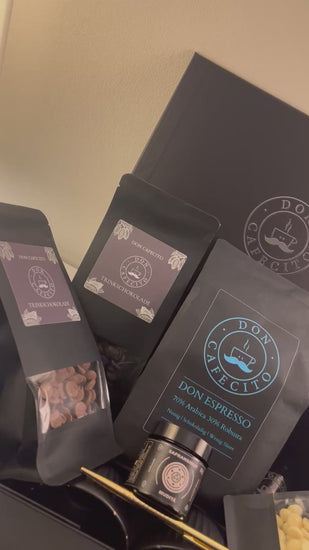 Die Don Cafecito Geschenkbox ist das perfekte Geschenk für alle, die hochwertigen Genuss lieben. Jede Box wird von Hand zusammengestellt und enthält exklusive Produkte, die geschmacklich und ästhetisch aufeinander abgestimmt sind. Ideal für Weihnachten, Geburtstage, Mitarbeitergeschenke, Kundengeschenke oder als edles Geschenk an Dich selbst.